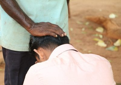 උදේ වරුවේ කැබිතිගොල්ලෑව, තල්ගහවෙල ගමේ පවුල් සොයා මා ගියේ ඉතාමත් වේදනාවෙනි. පළවෙනියටම ගියේ ආච්චි අම්මා කෙනෙක් ඉන්න ගෙදරකටය. මා අපහසුවෙන් වුනත් පහත් වී ආච්චි අම්මාට වැන්දා. ආච්චි අම්මා මයෙ අප්පච්චි බුදු වෙන්න ඕන, නිදුක් නීරෝගී වෙන්න ඕන කියලා මගේ ඔළුව සහ පිට අතගෑවා. ඇත්තෙන්ම මට ඒ මොහොතේම සුවයක් දැනුනා. ඒ විදිහට දහවල් 1 වනවිට ආච්චිලා සීයලා 24 දෙනෙක් ලඟ දණ ගහලා වැන්දා. පවුල් 59කට උදව් කලා. ඒ අම්මලා තාත්තලාගේ ආශිර්වාදයෙන් මා සුව වුණා.