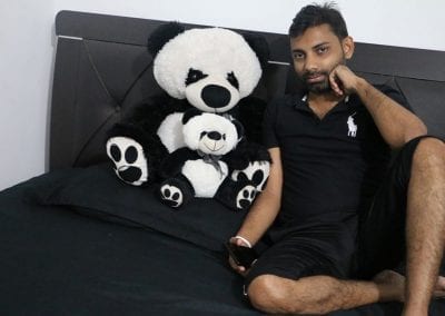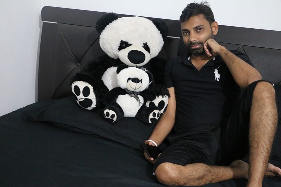 මගේ දකුණු පැත්තෙන් ඉන්නේ මගේ ටෙඩියෝ දෙන්නා… කලු පාට ගැන වැඩිය හිතන්න එපා , මගේ කාමරේ 90%ක් කලු පාටයි… මම ආස කලු සුදු විතරයි.