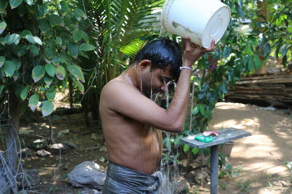 වැඩ කරලා ඉවර වෙලා, කාලත් ඉවර වෙලා ඊට පස්සේ නාගන්න ගිය. තරු පෙණුනේ ඉතිං නානකොට. හොඳ වෙලාවට ළිඳක් නොවුනේ. නැත්නම් වතුර අදින්නත් වෙනවනේ.