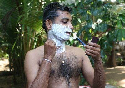 එකක් මට යාලුවෝ නෑ, ඊටත් වඩා පීනන්න බෑ. බාල්දියෙන් හෝ හිල්පොල්කට්ටෙන් නාන ඒවා තමයි මට දාන්න වෙන්නේ…. ගල් උඩ බෝතල් තියලා සෙට් එකත් එක්ක නාලා සෙල්ෆි නොදැම්මට අවුලක් නෑ. මෙහෙම එකක් හරි දාන්න පුලුවන්නේ. හික්ස්… සික්ස් පැක් නැති නිසා කටු ටික දැකලා කෙල්ලෝ කීයක් මාව දාලා යයිද දන්නේ නැහැ. බඩත් ඇවිත් දැන්නම්. කමක් නෑ කටු ටිකට වඩා බඩ වටිනවා… විනාඩි 10න් නාගෙන ගෙට ආවේ අද උදෑසන ව්යාපෘතිය 2-3ක කට්ටිය මං නතරවෙලා ඉන්න ගෙදරට එන්න පටන් ගත්ත නිසා.
