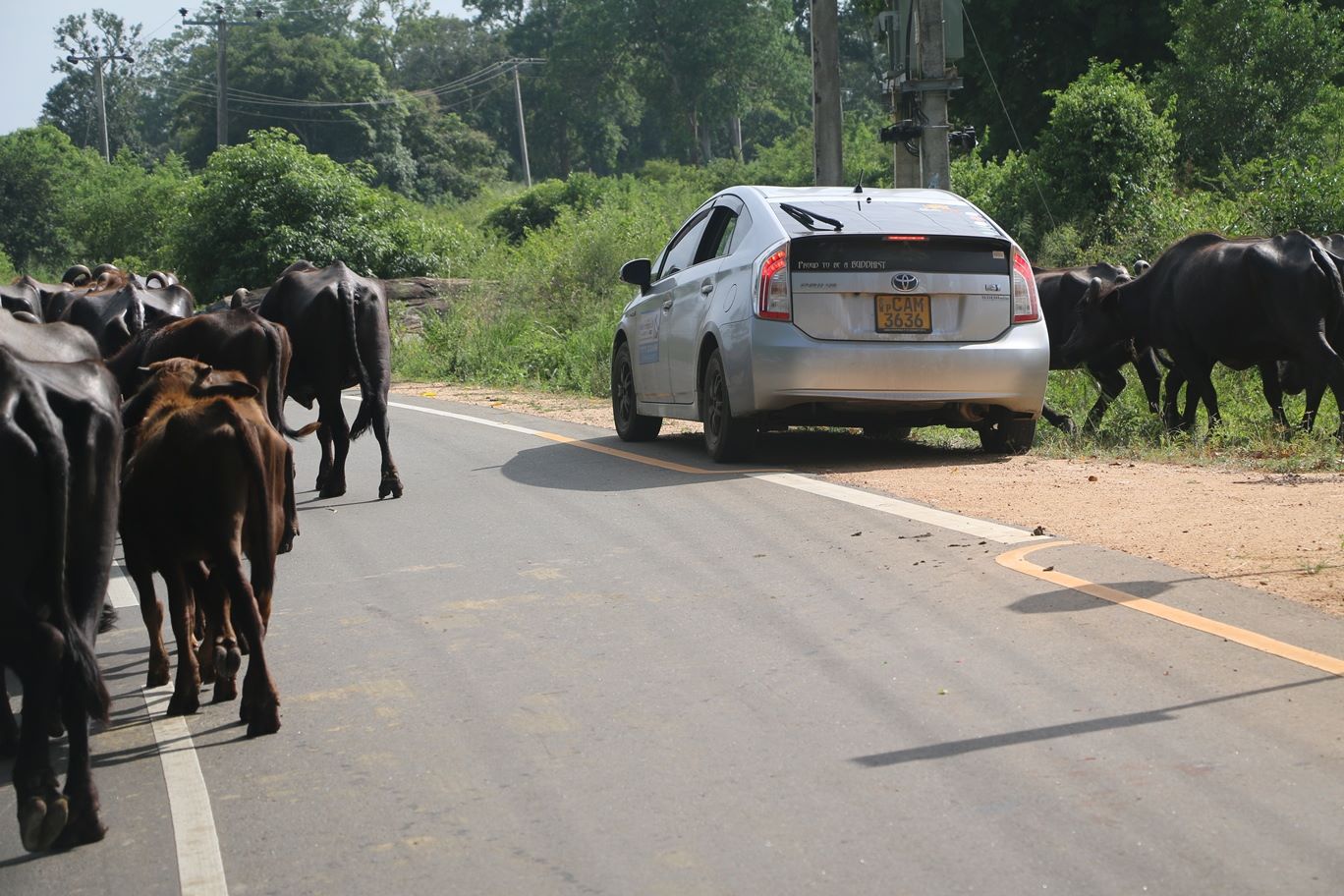 පහුගිය දිනක කතරගම යන අතරමගදී මී හරක් රංචුවකට අහු වුණා