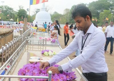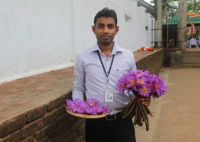 පෙරේදා රාත්රී දැමූ පෝස්ට් එකට ගොඩක් අය තමන්ගේ බලාපොරොත්තු, ප්රාර්ථනාවන් මට චැට් එකට එවලා තිබුණා. ඉතිං මං ඒ හැම දෙයක්ම පිළිවෙලට ලියාගෙන ගියා. ඒ හැම ප්රාර්ථනාවක්ම ඒ අය බලාපොරොත්තු වූ ආකාරයටම ඉෂ්ට කලා. විනාඩි 10ක් පමණ ඉඳලා යන්න කියලා ආවත් උදෑසන 6 සිට දහවල් 12දක්වා මේ වෙනුවෙන් කැපවෙන්න වුණා. වාර 5කට වඩා නැවත නැවත මල් සහ අවශ්ය දේවල් ගන්න ආපසු එන්න වුණා. ගයනි සහ ශෂික නොහිටියනම් ඇත්තෙන්ම මට මෙය තනියෙන් කරගැනීමට අපහසු වෙනවා.