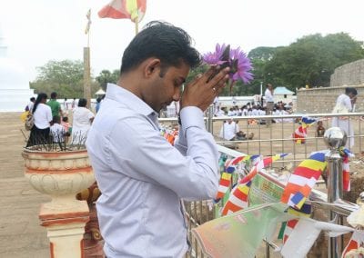 අප රුවන්වැලි මහා සෑය උදෙසා පුජා කිරීමට අතර මගදී නෙලුම් මල්, නිල් මානෙල් මල්, පිච්ච මල්, ඖෂධ ආදිය මිලදී ගත්තා. ඒ මල් අපි චෛත්ය මළුවේදී මහා සෑ රදුන් වෙනුවෙන් පුජා කළා. අනතුරුව හඳුන්කුරු දල්වා මහා සෑ රදුන් උදෙසා සුවඳ දුම් පුජාවක්, පහන් පූජාවක්ද, ඖෂධ පූජාවක්ද සිදු කළා. අවසානයේ රැස් කරගත් සියලු පිං දෙවියන්ට සහ මියගිය ඥාතීන්ට අනුමෝදන් කලා.