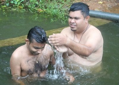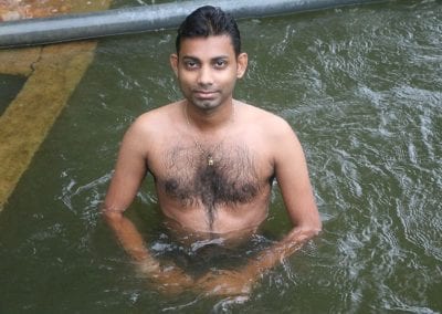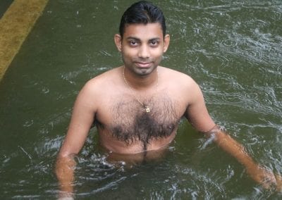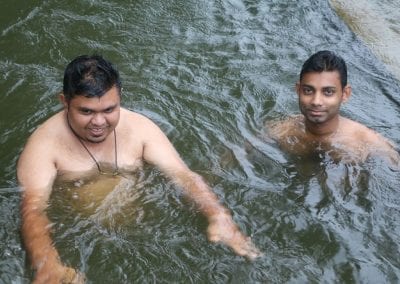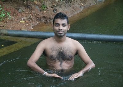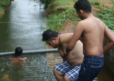 අදනම් අමතක නොවන දවසක්. හොඳමට වැස්සේ වුනත් වතුර ටික දැක්කට පස්සේ නාන්න හිතුනා. ඉතිං අප්පුච්චයි මායි බැස්සා ඇලට. පැය භාගයක් විතර නෑවා. එහා පැත්තේ තියෙන්නේ හඳපානාගල වැව. ඒකේ කිඹුල්ලු ? සහ අලි. අපිට උඩින් අලිවැට. අපි ඉතිං උන් ගැන වගක්වත් නැතුව නෑවා. මට ඉතිං ගිලෙන්න බැරි නිසා අප්පුච්චා නෑව්වා… ටිකකින් උඩ හරියේ නාන කොල්ලෝ ටිකක් යටි ගිරියෙන් කෑගහන සද්දේ ඇහිලා මම පිටිපස්ස හැරිලා බැලුවා. හත් දෙයියනේ මට අඟල් 5-6ක් එහායින් ? කිඹුලෙක් නෙමේ කබරයෙක්. ඒකා වතුර දිගේ වතුරේ පාරේ සැරට ගහගෙන එනවා. මමයි අයියයි යටිගිරියෙන් කෑගහගෙන කොහොම නැග්ගද මන්ද උඩ තියෙන කොන්ක්රීට් පඩියට නැගලා. මං කෑගහන සද්දෙට බයේ කබරයා ජබ ජබ සද්දෙට කකුල් ගගහා උඩුගම් පීනනවා දැක්කා… අනූ නමයෙන් බේරුනේ කබරයා. නැත්තම් දනී මං කරන දේ…