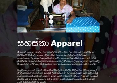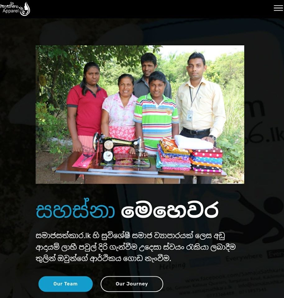 ශ්රී ලංකාව තුළ පැය 24 පුරාත් දින 365 පුරාවටත් ක්රියාත්මක වන අවම ශ්රම දායකත්වයෙන් වැඩිම සේවාවක් ලබා දෙන ෆේස්බුක් සමාජ ජාලය හරහා එක් රොක් වූ පිරිසගේ සහයෝගයෙන් සිදු කරන විශාලතම සමාජ සේවා ආයතනය වන SamajaSathkara.lk හි තවත් එක් විශේෂ ව්යාපෘතියක් ලෙස සහස්නා Apparel හැඳින්විය හැක. දිනකට දෙකකට සෑහෙන බඩු මල්ලකට වඩා ස්ථීර ආදායමක් ලැබෙන උපකාරයක් ලෙස සහස්නා Apparel ආරම්භ කෙරිණි. ඒ වගේම SamajaSathkara.lk හි තිරසාරත්වය/පැවැත්ම වෙනුවෙන් මෙම සමාජ ව්යාපාරය ආරම්භ කරන ලදි.