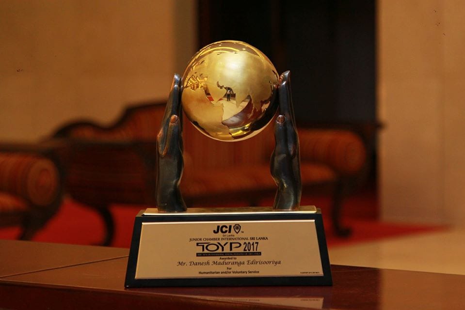 එහිදී “මානුෂීය සහ ස්වේච්ඡා සේවය” යන කාණ්ඩය යටතේ “2017 වසරේ ශ්‍රී ලංකාවේ විශිෂ්ඨතම තරුණ මානුෂීය සහ ස්වේච්ඡා සේවකයා” වශයෙන් මා තේරි පත් උනා. මා සම්මානයට පාත්‍ර වන මොහොතේ මා වටා පවුලේ හැම කෙනෙක්ම අසළින්ම සිටියත් එක්වරම සිහි වූයේ මගේ පියාණන් සහ ෆේස්බුක් මිතුරු මිතුරියන් වන ඔබ සියළු දෙනාවයි. මේ ගමන් මගේ මා හා එක්ව ගමන් කළ ඔබ හැම කෙනෙක් පිළිබඳවම අපමණ වූ සෙනෙහසක් සිතට නැගුණේ සතුටු කඳුළුද සමඟමයි.